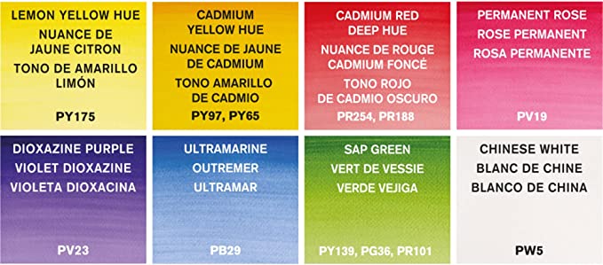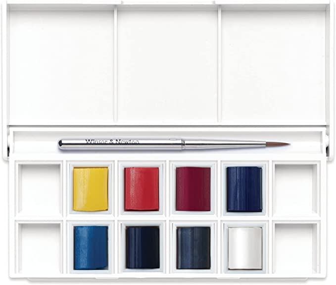 1 Cepillo de viaje • 8 medias pastillas Cotman: Tono amarillo limón • Tono rojo cadmio • Tono rosa más loco • Ultramar • Tono azul cerúleo • Índigo • Gris de Payne • Blanco chino. El contenido real puede variar.