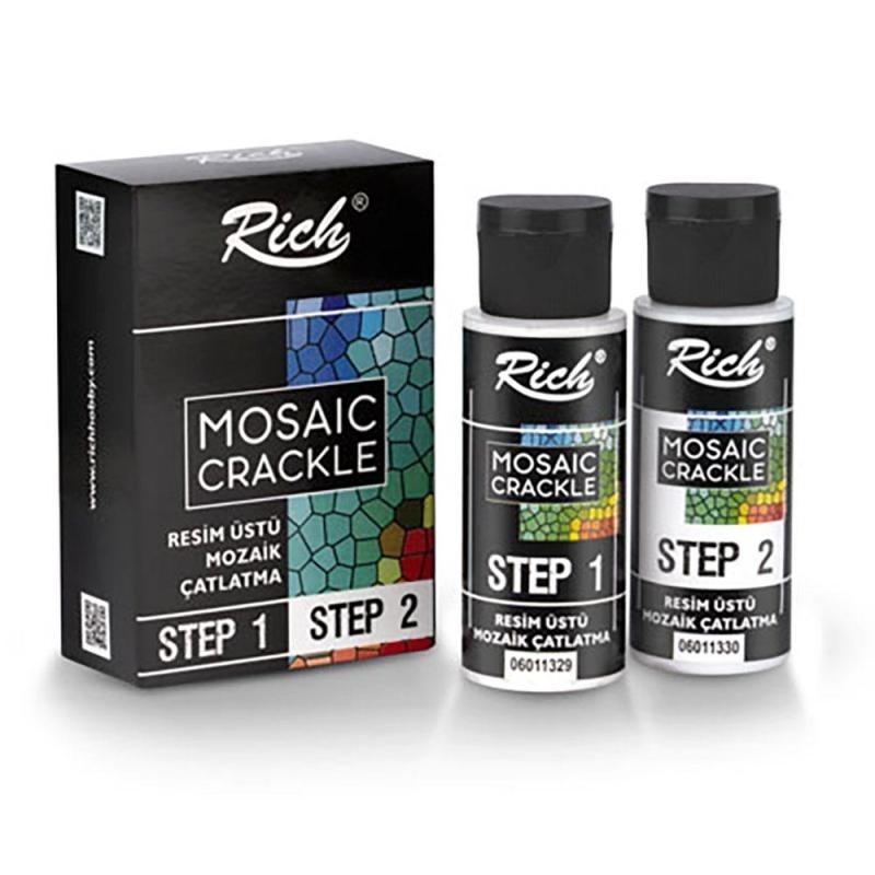 Ayuda a preparar efectos agrietados formados naturalmente que son los preferidos en trabajos decorativos y de pasatiempos. Es un conjunto de craqueo de imágenes que consta de 2 etapas. Gracias a su estructura transparente como resultado de la aplicación, no se pierde el trabajo decorativo preparado en el subsuelo. Su estructura fluida brinda comodidad durante la aplicación, no espesa y aparecen imágenes naturales. El paso 1 se aplica primero en la imagen. Después de que se vuelva transparente, se debe aplicar el paso 2 con un cepillo de seda sin seguir la dirección y dejar secar naturalmente. Se puede utilizar cera con tiza, crema de envejecimiento o cera para dedos para colorear los espacios del tejido como resultado del agrietamiento. Tiene una estructura de empaque de caja como un conjunto compuesto por 60 cc paso 1 y paso 2